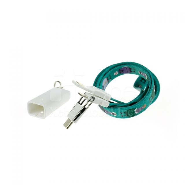 或是结合证件挂绳功能的颈挂绳客制化充电线,一样可以克服规格问题,便利充电,还有收纳扣,可以保护充电头的清洁。